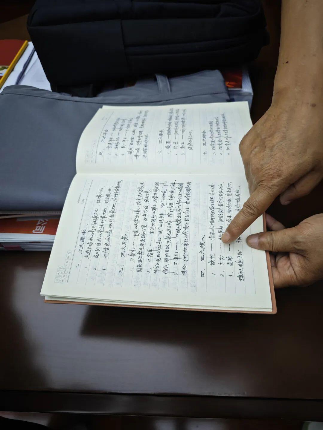 在金棕的办公室里,摆满了各类理论书籍,还有一个专门的书架,上面整齐地摆放着金棕整理好的备课和学习笔记,俊秀的笔迹认真记录着他的所学所感。为了讲好每一堂党课,他每天都要认真学习理论知识,并注意将所学所思所悟记录下来。