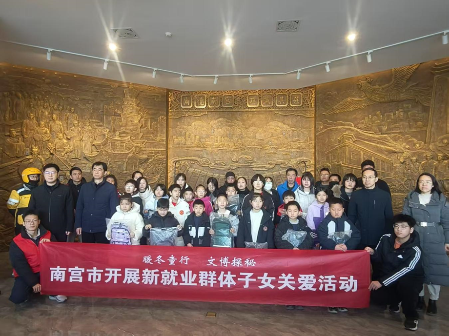 为深入关怀新就业群体及其家庭,丰富新就业群体子女寒假精神文化生活,2026年2月3日,河北省南宫市委社会工作部联合市团委、市妇联、市红十字会等部门,在南宫市博物馆举办“暖冬童行 文博探秘”新就业群体子女关爱活动。来自我市顺丰快递、淘宝闪购等的20余名新就业群体子女参加了活动。