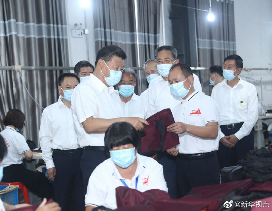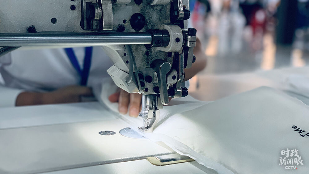 △工作现场以及书包、拉杆箱等产品展示。(总台央视记者李晓周、段德文拍摄)