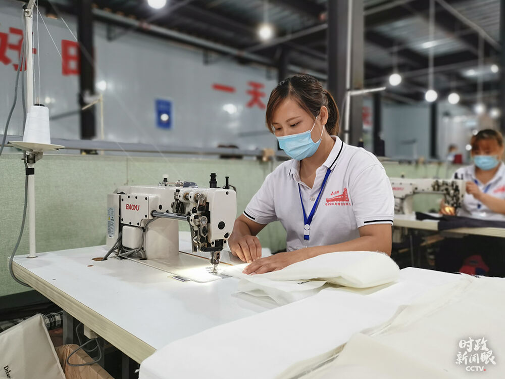 △正在扶贫车间工作的张丽。(总台央视记者李晓周拍摄)