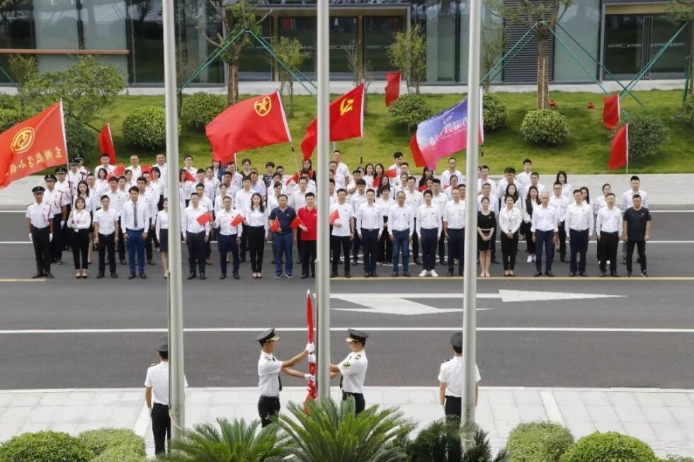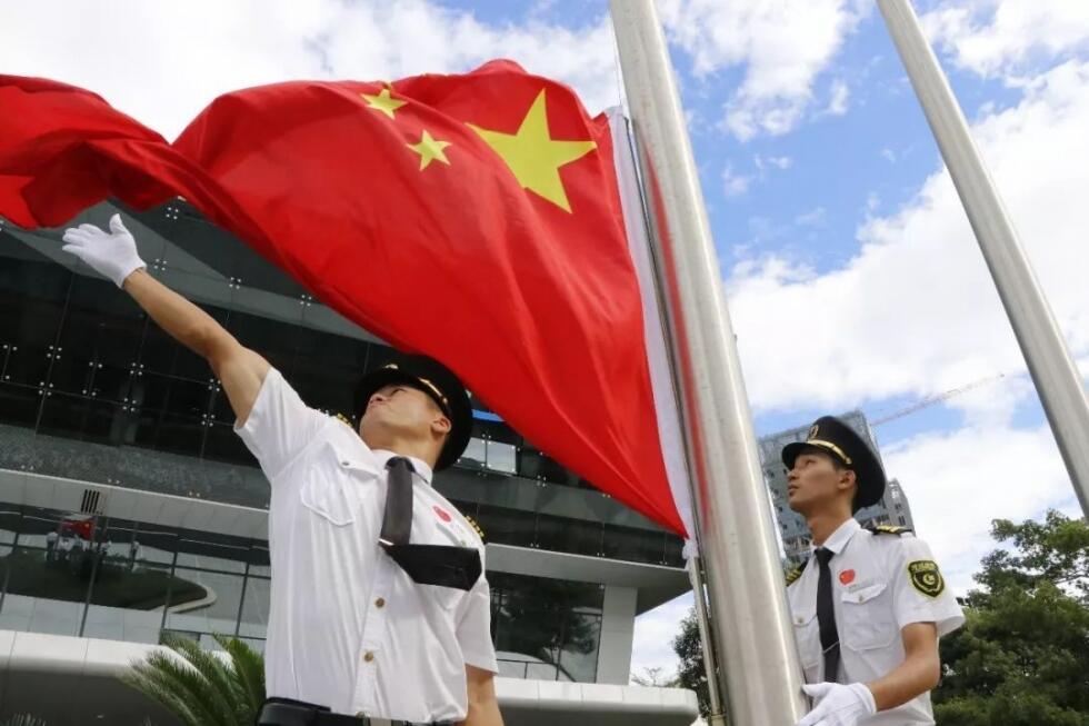 面对冉冉升起的五星红旗,现场人员庄严肃穆并行注目礼,向伟大的祖国致敬,共同祝愿祖国繁荣富强。
